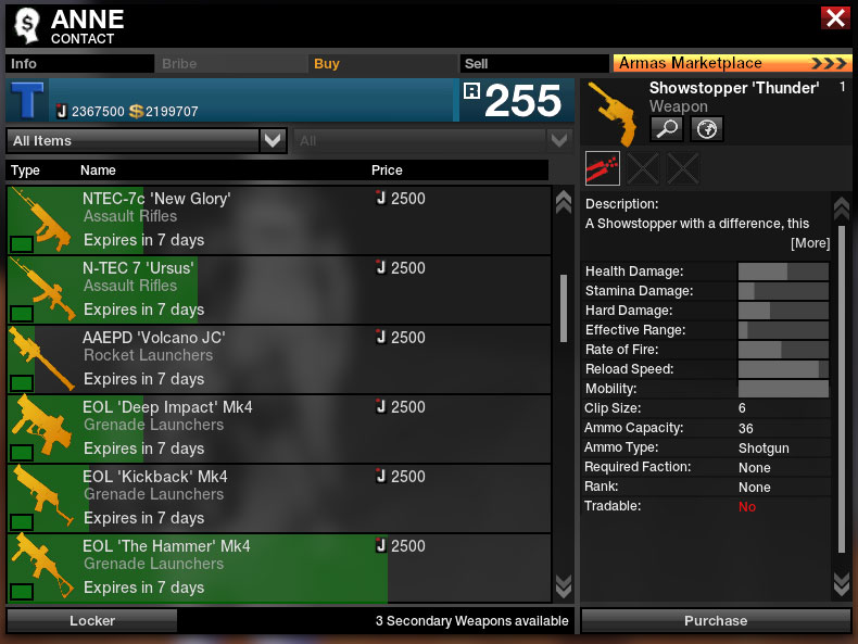 Starting June 24, when you go into the Joker Store, Anne will be your official liaison for all those black-market deals Joker would prefer to keep off the books. She's been hacking shipments to secure more of the prototype parts and weapons they use to supply Legendaries to the public, so now she can make them available for valued Joker Gunworks customers to rent all the time.